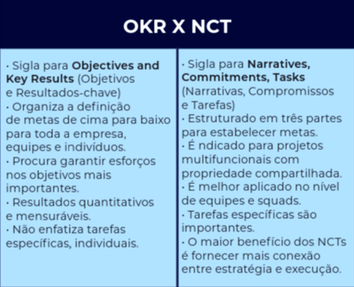 O modelo de gestão por NCTs, sigla para Narrativa, Compromissos e Tarefas, é uma abordagem estratégica projetada para melhorar a comunicação, direcionamento e execução de planos dentro de organizações. Esse método centra-se na ideia de que a eficácia na realização de metas não depende apenas da definição destas, mas também de uma comunicação clara e de um entendimento compartilhado entre os membros da equipe sobre o porquê dessas metas e como elas serão alcançadas. Vamos detalhar cada componente do NCT para entender melhor como funciona: